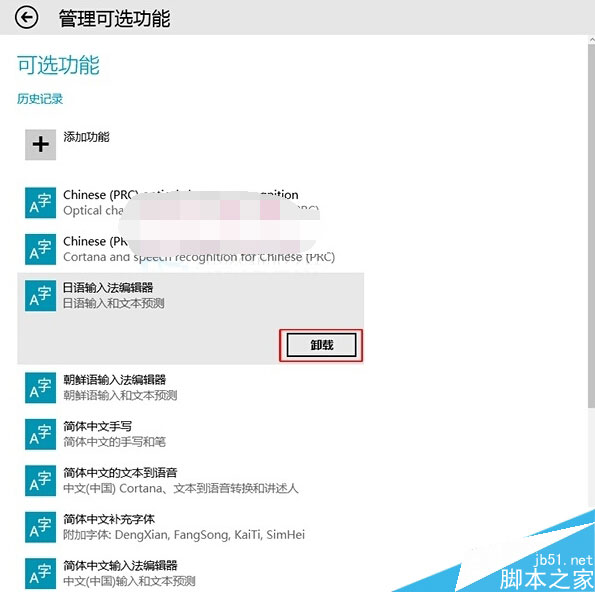 3、点击要不需要的可选功能,点击卸载。