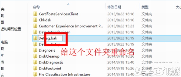 把文件夹“Defrag”重命名为“Defrag.bak”