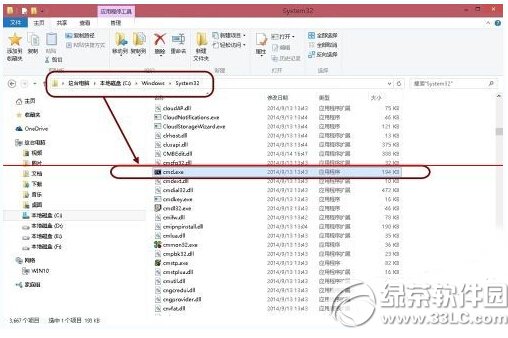 6、这时,可以找到系统盘文件夹Windows/system32中的cmd.exe文件,或者在开始菜单中,找到所有程序 > 附件 > 命令提示符图标