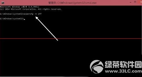 4、命令窗口中输入 powercfg -h off,即可关闭休眠功能,同时 Hiberfil.sys 文件也会自动删除。