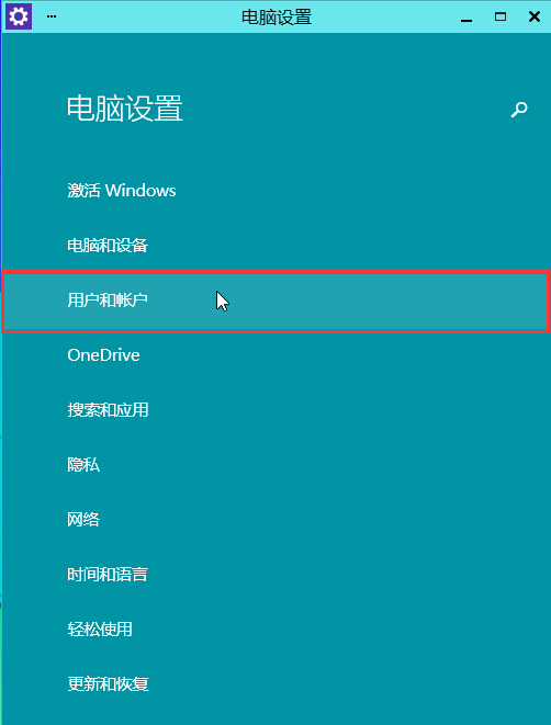 2.在电脑设置界面中,点击打开“用户和帐户”进入下一步操作。如下图所示