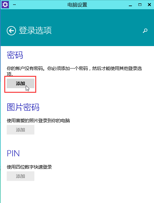 4.在登录选项界面下,点击“添加”进入下一步操作。如下图所示
