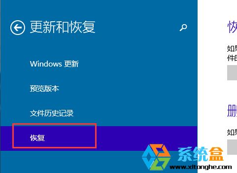 3、然后在“更新和恢复”界面中选择【恢复】;