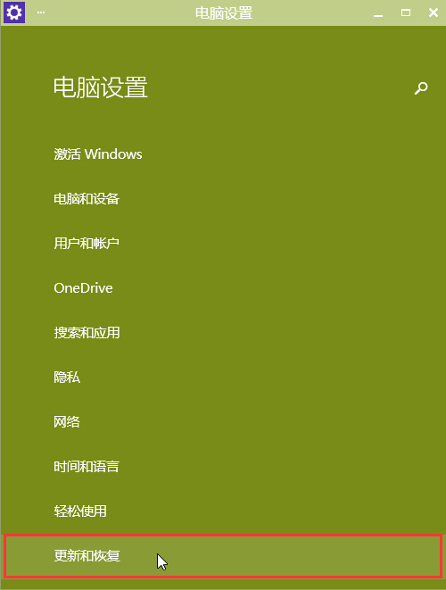 2.在打开的电脑设置窗口中,点击“更新和恢复”进入下一步操作。如下图所示