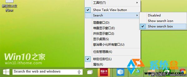 4、注册表修改完成后退出,然后注销一下win10系统,这时就搞定了,我们可以看到搜索按钮不见了,取而代之的是一个搜索框。