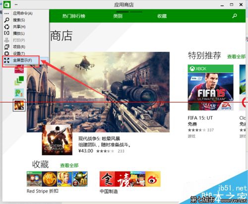 4、选择最下面的“全屏显示”,该应用即全屏显示