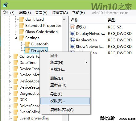 ▲右键单击Network文件夹图标,选择“权限”,