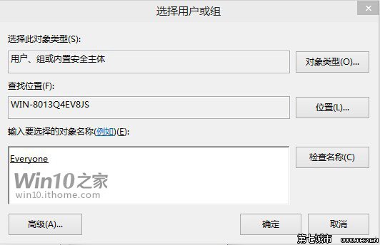 需要注意的是,您可以去控制面板的用户账户里确认准确名称,输入之后点击旁边的“检查”按钮确认是否输入的用户名存在:存在的话会自动排版为准确名称(含下划线),不存在或者输入有误会给出提示。如果是您自己的电脑,怕麻烦的话可直接输入“Everyone”,让这个系统的所有用户得到权限(方便的同时安全性会降低,不过对于预览版系统不必太在意吧)。
