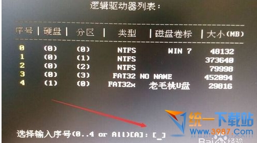 选择你Win10安装的磁盘,然后把它前面的序号输入到下面。再回车。