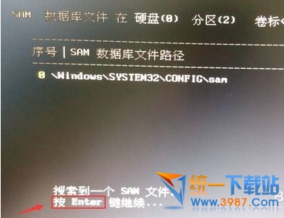 搜索到SAM数据文件路径,这个过程会比较外一点,耐心等持一会就可以了。然后再按回车键。