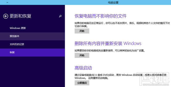 (1)一般建议先选择第一项“恢复电脑而不影响你的文件”,此选项不会删除任何已有的数据(已经安装的软件会被删除)。点击【开始】然后按照提示点击【下一步】即可开始恢复电脑。