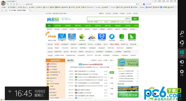 对于配备了触摸屏的设备,会自动显示charm工具栏。