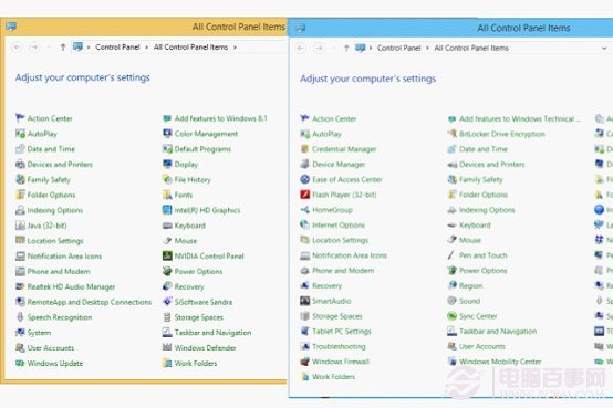 除了颜色,这两款操作系统的图标看上去非常不同。微软对于扁平化的追求要更激进一些,彻底放弃了渐变效果。简洁性和大量蓝色的使用让我们想起了曾经的Windows 95/98,但精细程度和对比度都更高了。