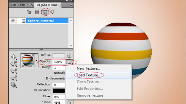 9.回到主场景,现在去的“窗口” > “3D 。选择3D材料。选择不透明度,并载入刚才的PSD文件。