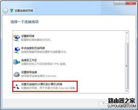 3. 在弹出的对话框中“设置无线临时(计算机到计算机)网络”,然后点击下一步;如图1-4所示: