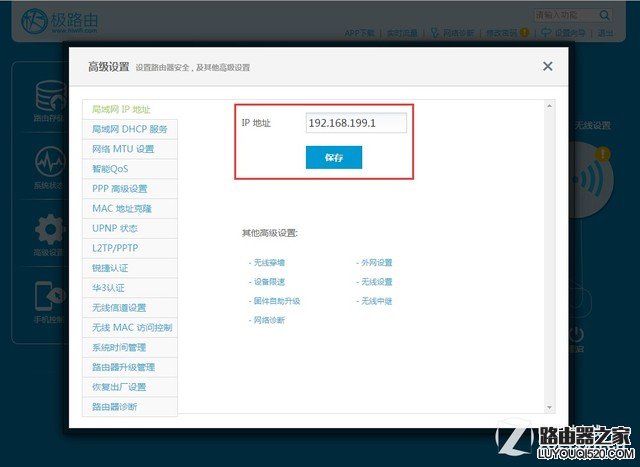 接下来,我们首先需要对桥接路由B进行设置操作,这一操作也非常简单我们一步一步来,给大家展示出每一步的具体操作。第一步,我们需要进入桥接路由B的设置,将其IP地址修改为和主路由A同一网段但不重合的IP地址。如果IP地址重合,我们的无线桥接工作就会因为IP地址错误而失败。接下来,我们就可以进入WDS无线桥接的设置页面。