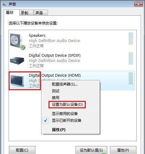 有的时候使用的就是HDMI输出,但依然没有声音的问题则是默认音频播放设备的默认设备不是HDMI接口的输出,而是普通音频接口的数据,这个时候HDMI线路是没有音频信号的传输,只需要在控制面板中,找到声音和硬件,在找到管理音频设备,在找到HDMI输出设备设置成默认设备就可以了。