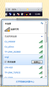 从无线列表中找到你的无线路由器,并选中,然后点击连接,“自动连接”表示下次开机将自动连接到路由器