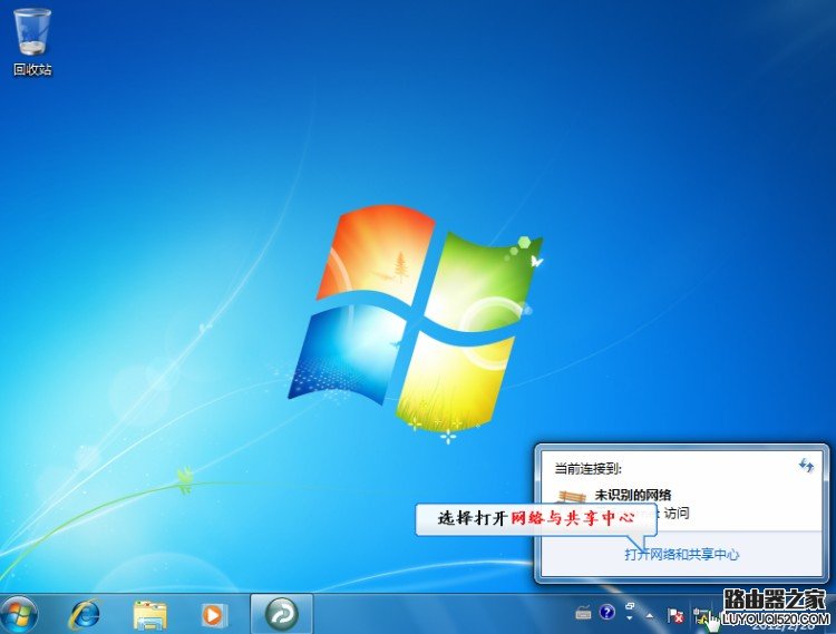 1、点击右下角网络连接图标 打开“网络和共享中心”