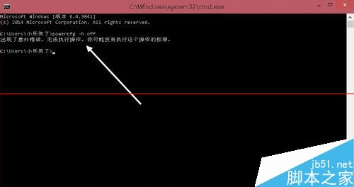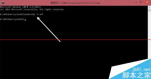 4、命令窗口中输入 powercfg -h off,即可关闭休眠功能,同时 Hiberfil.sys 文件也会自动删除。
