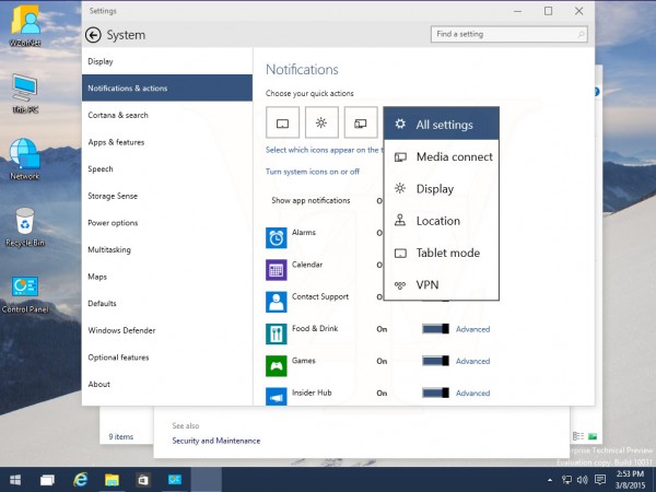 俄罗斯网站WZOR今天公布了Windows 10 Build 10031英文企业版的第二波系统截图,包括全新的登陆界面、通知中心、系统设置、注册表选项、控制面板、屏幕选项、屏保、半透明化的开始菜单、多任务程序切换、屏保等界面。