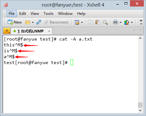这里我用cat -A显示文件的特殊符号: