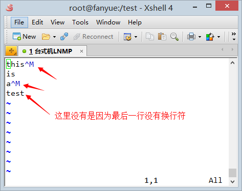 windows下创建的文件换行符为^M$,但最后一行结尾没有换行符