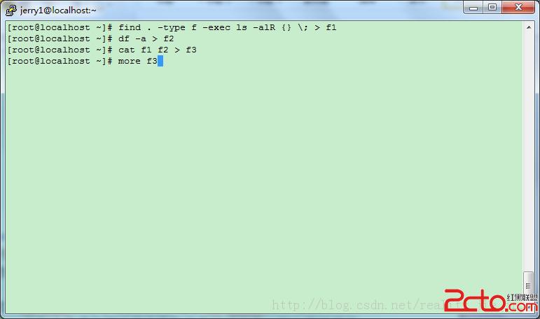 8.在/root下新建文件f1和f2,设置f1的内容是/root目录下所有文件的详细信息,f2的内容是所有的文件系统信息,最后将两个文件合并生成文件f3。