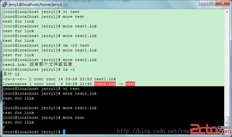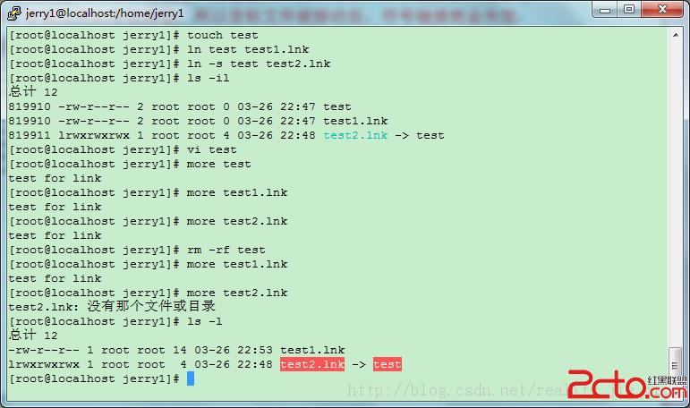 11.在上一个例子中,如果重新建立文件test。那么访问硬链接文件test1.lnk是否将会访问到test文件的内容,访问符号链接文件呢?请用命令操作证明你的判断。