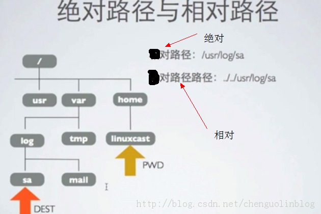 5 相对路径和绝对路径的图,从图中的PWD到DEST