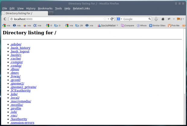 下面的命令生产一个通过HTTP显示文件夹结构树的简单网页,可以通过浏览器在端口8000访问,直到发出中断信号。