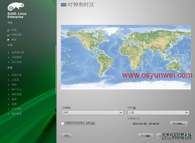 设置时区:亚洲,上海