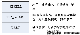 UART就像是嵌入式设备的键盘/显示器。它是一种非常简单的硬件资源,在它之上可以构建通用的I/O设备tty,在tty之上,就可以实现各种应用,如shell等。
