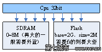 现在的cpu-core一般都是32位的,即有4G物理寻址空间,而嵌入式的SDRAM并不要那么大,所有可以把外部flash和SDRAM一起编址: