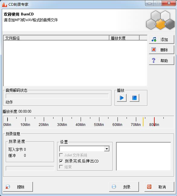 CD刻录专家是一款功能强大、好用的将电脑上的MP3、WAV、OGG、MP2、MP1、MPC等多种音频文件刻录成音乐的CD刻录软件。CD刻录专家可使您能在CD机、兼容CD播放功能VCD/DVD机甚至汽车音响上同样听到您喜欢的电脑音乐,非常方便。