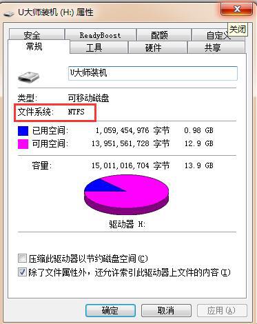 原因分析:当确定U盘空间足够之后,文件却无法复制,那么就是因为U盘格式的问题了。常见的U盘格式有“FAT32”和“NTFS”两种,而FAT32格式的U盘最大只能支持4GB的文件操作,所以要转换成NTFS格式。