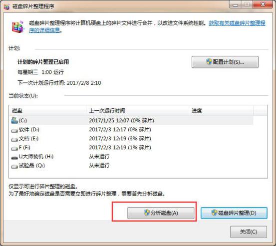 3、在弹出的窗口中点击“分析磁盘”