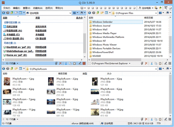 Q-Dir从 XP 时代起已经成为很多朋友喜爱的工具。现在看来依然实用值得推荐!Q-Dir 不仅提供官方绿色版,支持多国语言(包括中文),而且还是完全免费的。Q-Dir的功能并不多,但它更加简单易用,任何用户都不需学习。更适合广大普通用户。
