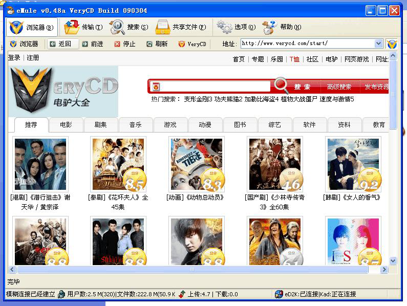 近年来,电驴终于更新换代了,电驴是在eMule的基础上全新开发的免费开源的新版本,下载速度更快,操作界面更简便,更新增的人性化功能。电驴资源丰富,可以将全世界计算机和服务器整合成为一个巨大的资源分享网络。