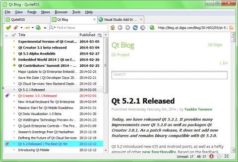 很多人都喜欢用RSS客户端软件来订阅网站更新,那在Google Reader关闭以后,有哪些好的 RSS 客户端软件呢?QuiteRSS是一款免费开源的RSS阅读器客户端,且支持Windows、Mac、Linux 系统,是款简单实用的RSS阅读器。