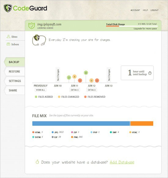 CodeGuard最大特点就是全自动,新手小白和懒人真的必备啊!CodeGuard能让站长们方便地备份和恢复自己网站的文件数据和数据库。也能很好的保护你的网站代码!CodeGuard 采取了差异备份的方式,首次完整备份之后,就算你对网站内容的进行修改,它也只会再传输修改的部分,大大节省了备份时间和储存所需的空间。