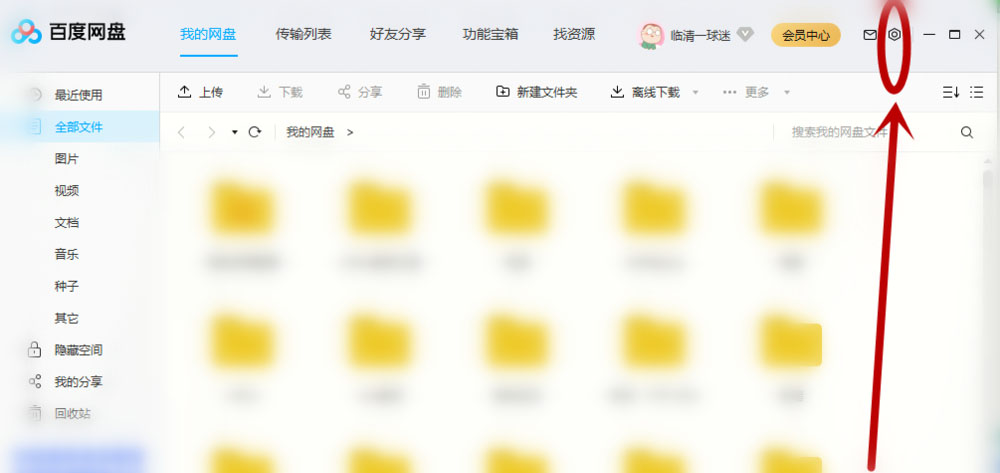 2、在百度网盘首页,单击右上角的【设置】按钮