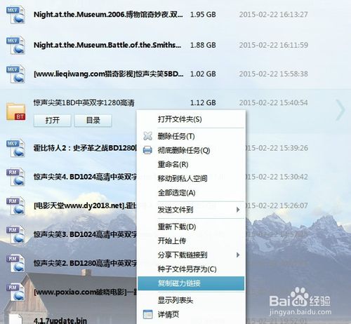 又一个复制 下载/磁力链接(我因为是通过磁力链接下的,所以就只显示了磁力链接,普通下载方式一般都是显示的 复制下载链接)。