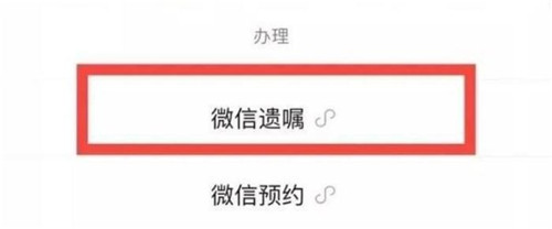 在微信里搜索并关注“中华遗嘱库”公众号,点击“微信遗嘱”选项,点击菜单栏【办理】,进入【微信遗嘱】。