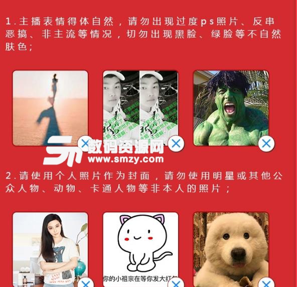 出现过度PS照片、反串恶搞、非主流等情况。切勿出现黑脸、绿脸等不自然肤色!