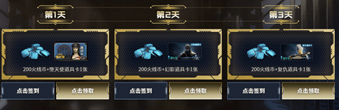 玩家在周一至周五累计签到3天,即可在周六、日领取大礼包、每周刷新资格、当天登录即可增加签到次数