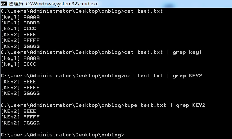 2. type/cat + grep 过滤文件内容:cat test.txt | grep KEY2 或 type test.txt | grep KEY2