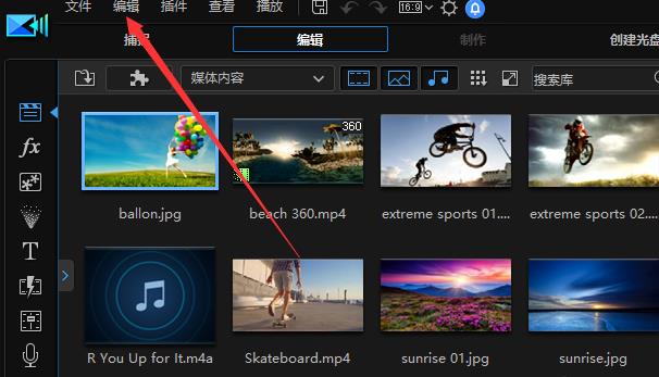 1、在进入威力导演18的编辑界面中选择“编辑”选项