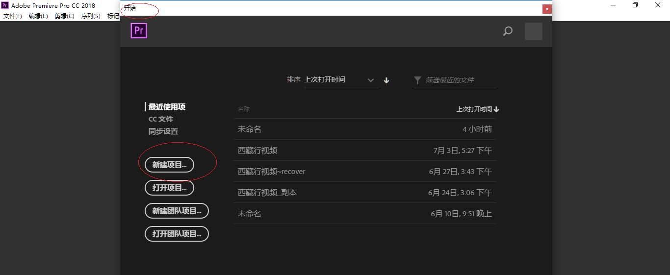 2、弹出"开始"对话框,点击左侧"新建项目..."按钮。