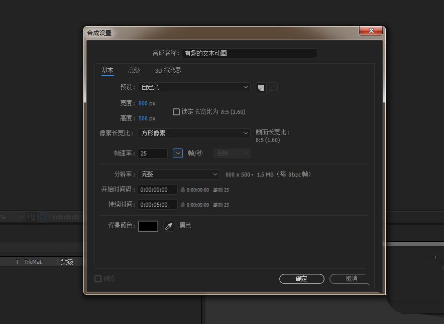 1、打开AE软件,命名有趣的文本动画,调整相应的参数。